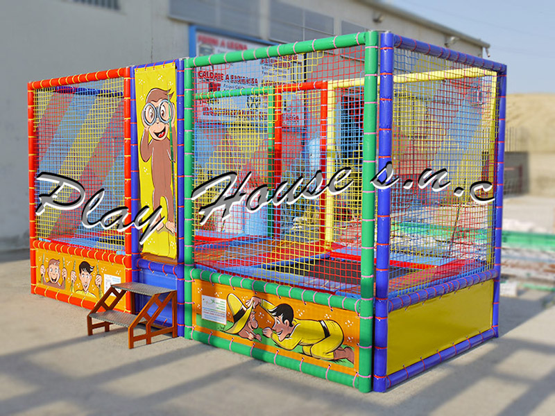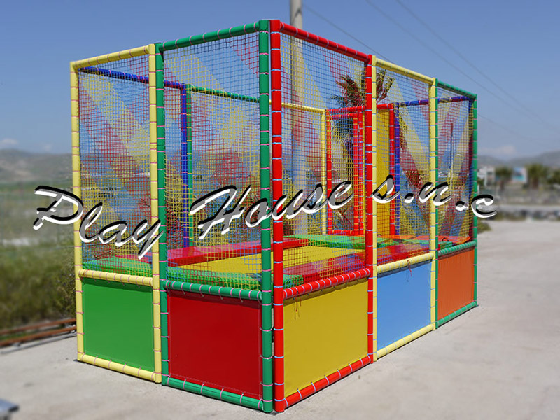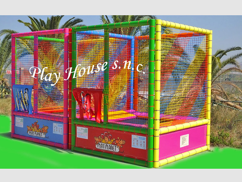 Tripla rete da salto - molle in acciaio - cuscini di protezione in gommapiuma rivestita in pvc ignifugo.