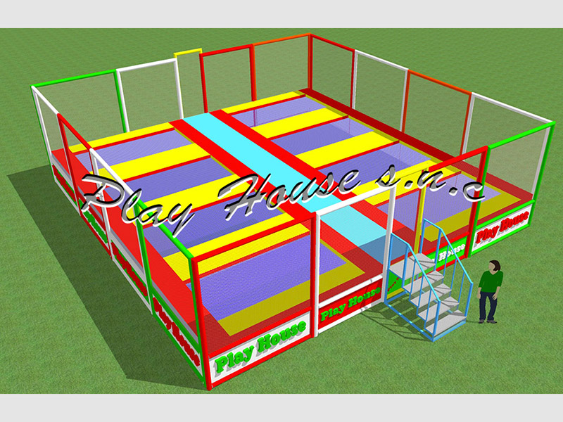 Tripla rete da salto - molle in acciaio - cuscini di protezione in gommapiuma rivestita in pvc ignifugo.