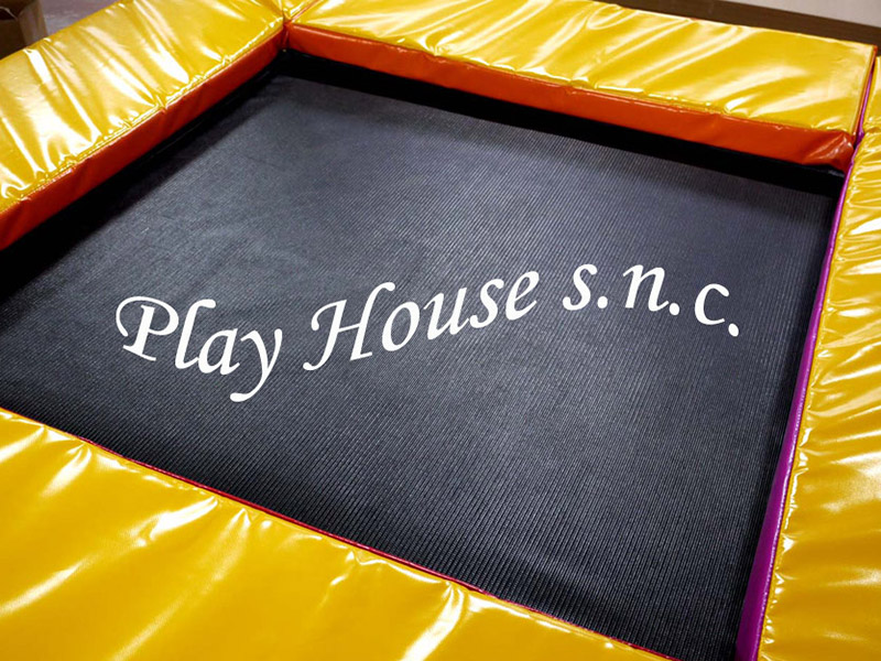 Tripla rete da salto - molle in acciaio - cuscini di protezione in gommapiuma rivestita in pvc ignifugo.