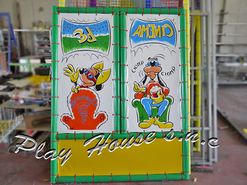 Scenografie su pvc ignifugo M2 680-700 gr e dipinte a mano con colori atossici indelebili.