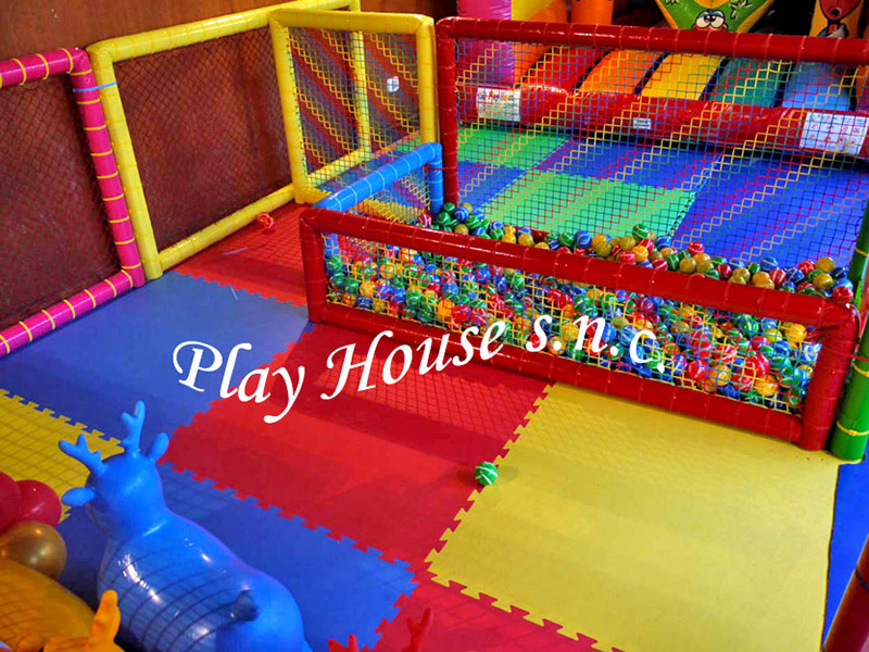 L'area base comprende: recinzione - entrata personalizzata a mano - 1200 palline - pavimento antitrauma.