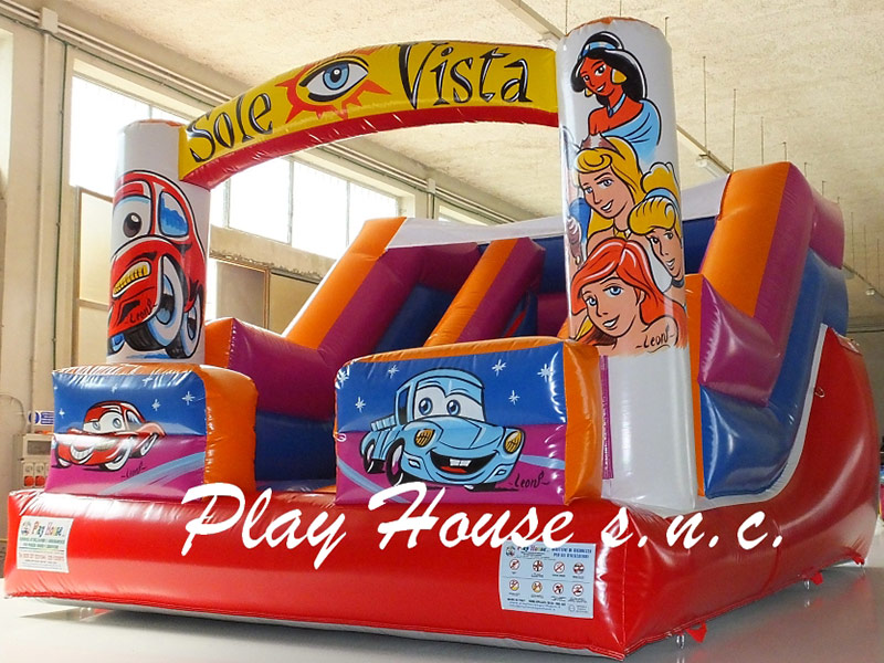 Realizzato in pvc ignifugo M2 680-700 gr e scenografie dipinte a mano con colori atossici indelebili.
